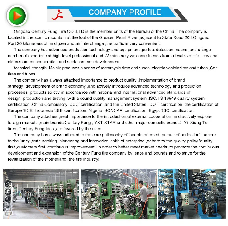 vQINGDAO CENTURY FUNG TIRE CO.,LTD is the one of biggest specialized manufacturer of motorcycle tires, and inner tube ,wheelbarrow tires and inner tube,as well as other rubber product.