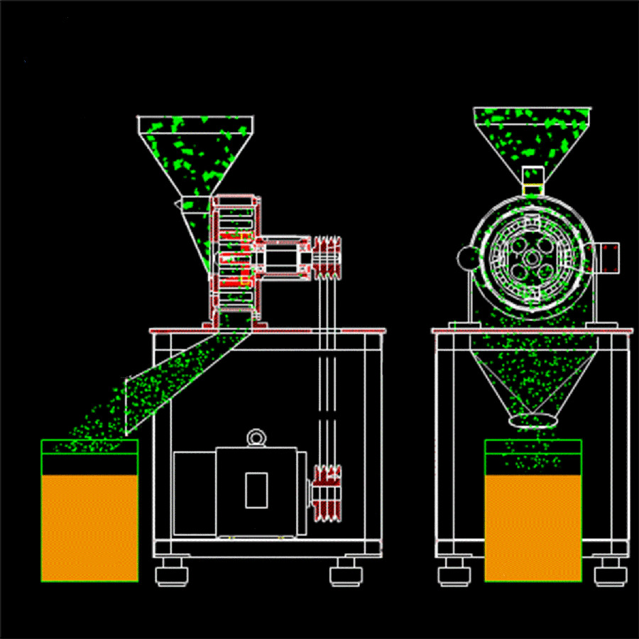 Model | Output (kg/h) | Spindle speed(r/min) | Feed size (mm) | Grinding fineness (mesh) | Motor power (kw) | Weight (kg) | Dimensions (L*W*H) |