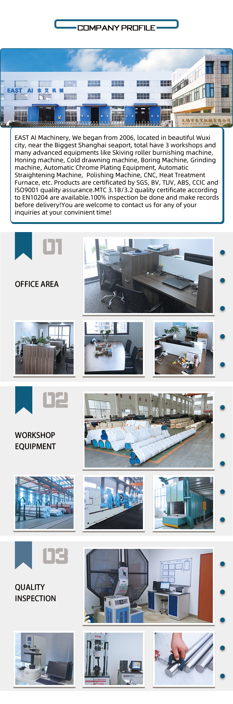 | Supply capacity: | 500 tons/month hollow piston rod | Roughness: | Ra <= 0.2u |