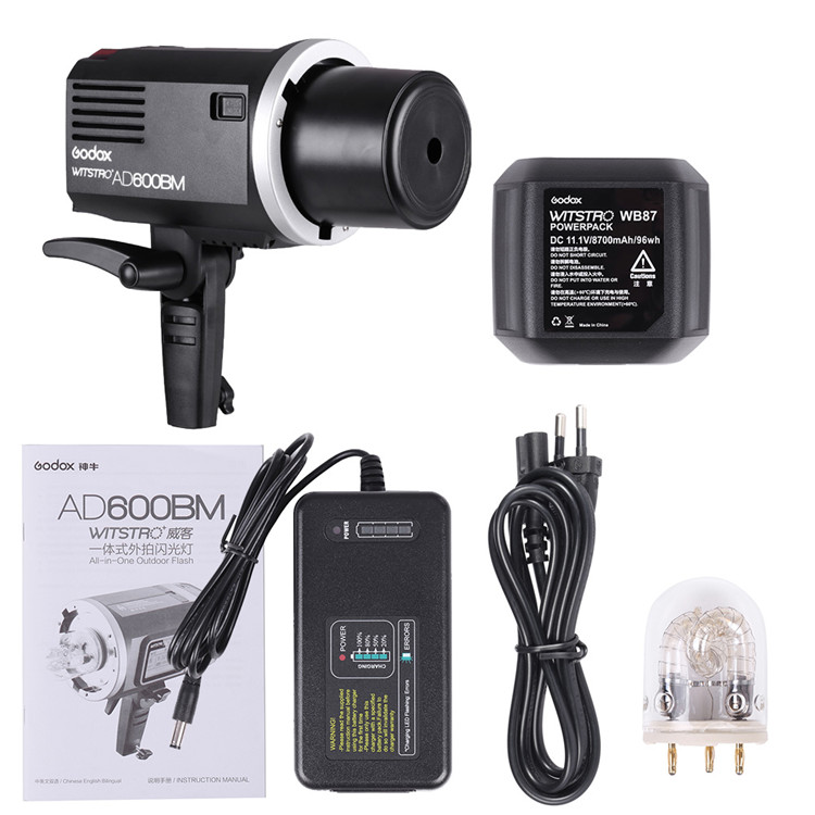 - Professional lithium battery pack with large capacity (11.1V/8700mAh) can provide 500 full power flashes and recharge within 0.01-2.5 seconds.