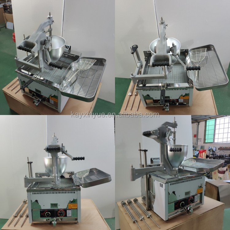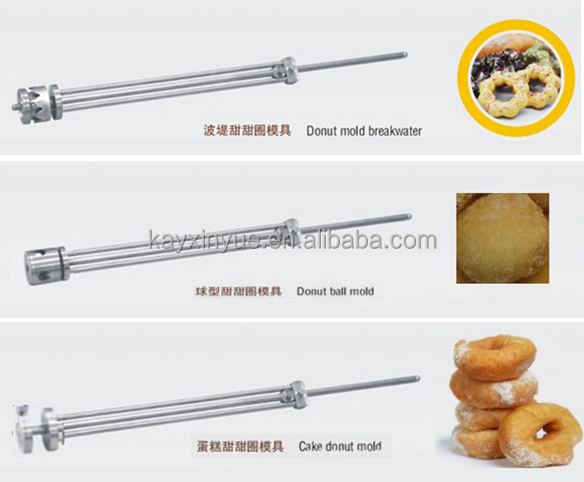 9L stainless steel vat, randomly equipped with three sets of molds, which can produce flower-shaped, circle, and spherical donuts respectively. Three gears are adjustable, and any one mold can be adjusted to three donuts of different thickness and size