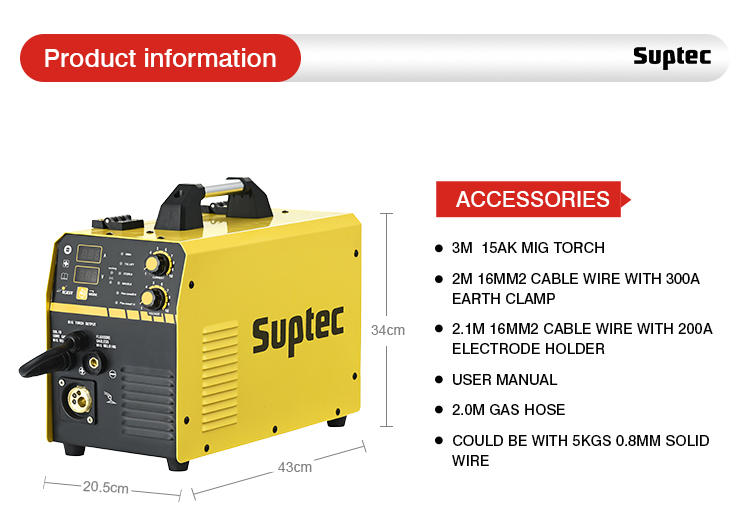 Suptec was established in 2016 and developed to 2022 with two factories as expanding production capacity, the company has 100 qualified personnel including 5 R&D engineer teams, 10 skilled inspectors, QC quality control team leading brand suptec is the most CE The top quality of ROHS goes to the world.With three production lines, monthly production of 50000 pieces of MMA and 8000 pieces of MIG and 10000 pieces of TIG, fast delivery 30-40 days normal way.