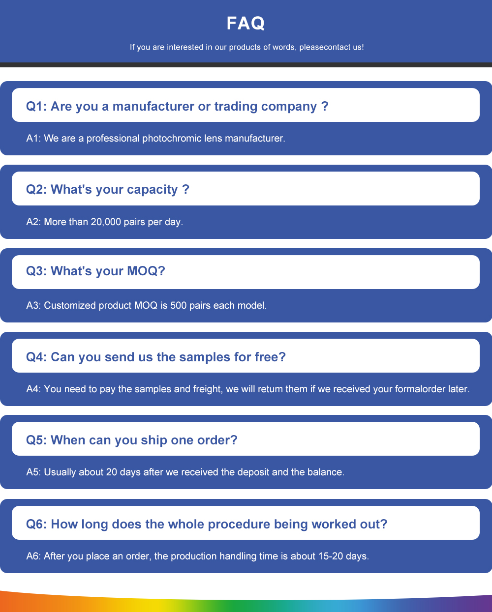 | Customization support: | OEM production | Packaging Details: | 1. Lens envelope: white envelope/envelope designed by you/envelope designed by us 2. Outer carton size: 48X48X30 cm Inner carton size: 29X10X10 cm 25 inner cartons/cartons |