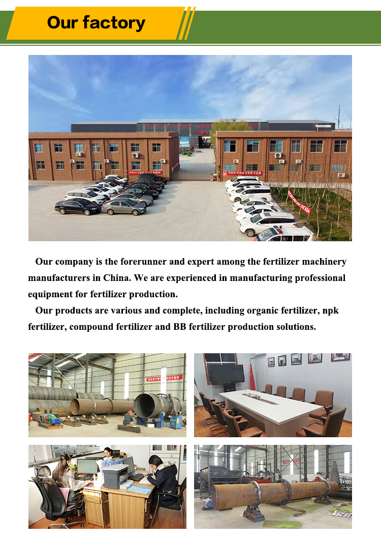 A: We are a professional manufacturer of fertilizer processing equipment and related machinery (fermentation machine, granulator, crusher, mixer, packaging, feeding machine and conveyor belt), etc.