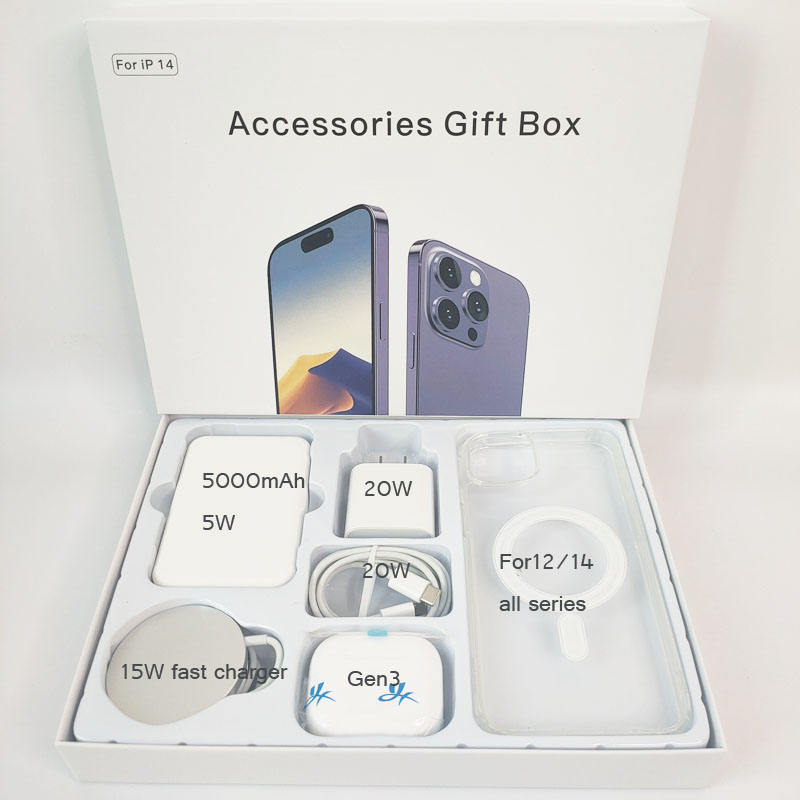 2022 Trend Power Bank 5 in 1 Wireless Magsafes Charger Travel Charger Phone Case Digital Gift Box Set for iPhone 14 13 12