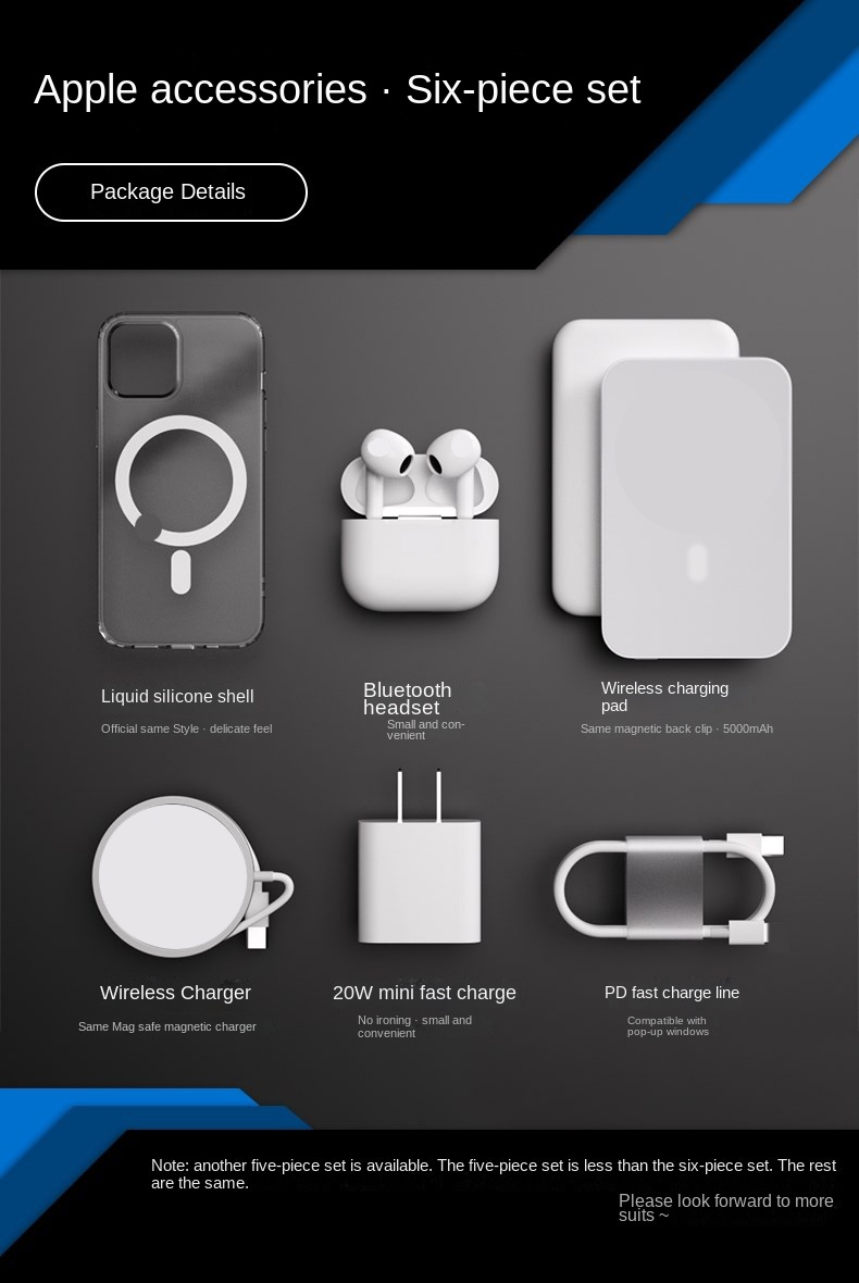 1. There are five products: 15W magnetic wireless charging/20W fast charging/data cable/magnetic mobile phone case/magnetic battery 5000mAh