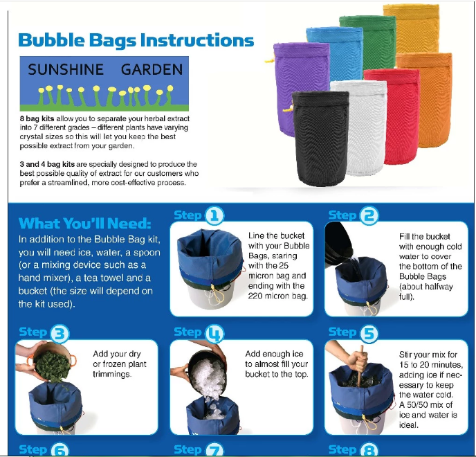 The Bubble Bag is the highest quality botanical extractor. It allows to sort your herbal extracts into different grades, different plants have different crystal sizes, so this will allow you to preserve the best extracts from your garden. Bubble bags are designed for customers who prefer a streamlined, more cost-effective process to produce the best possible extract quality. Our screens are top quality monofilament screens. The nylon mesh is heat embossed to prevent fiber movement, maintain a consistent pore size and protect extracts from contamination.