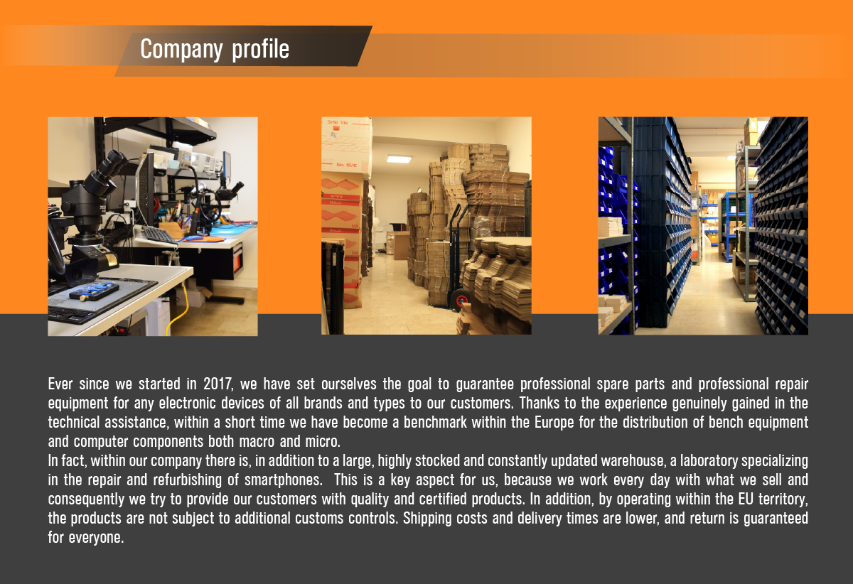 E-Lab, a Europe-based company, sells smartphones, tablets, computer spare parts, and laboratory equipment. Thanks to a constantly updated portal, a warehouse with more than 10,000 products.