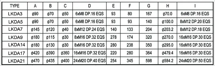 Dimension table for part-turn drive installation (unit: mm):