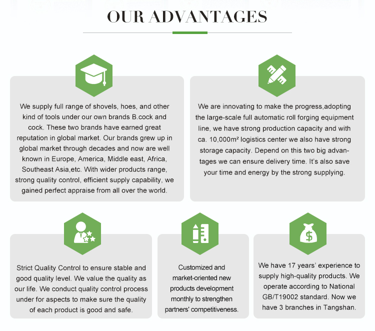 In the past 17 years, the company has continued to innovate and forge ahead, adopting large-scale automatic roll forging equipment assembly lines to produce a full range of hoes, shovels and other tools. Our company has advanced equipment and technology, equipped with the most advanced automatic chain furnace, automatic oil injection furnace, baking finished product furnace.