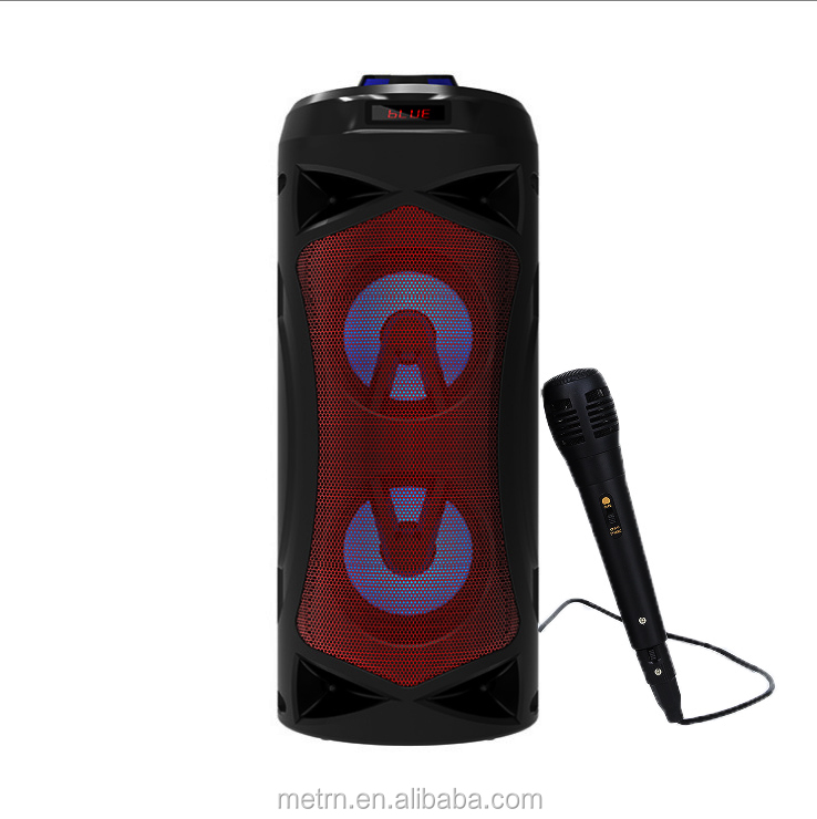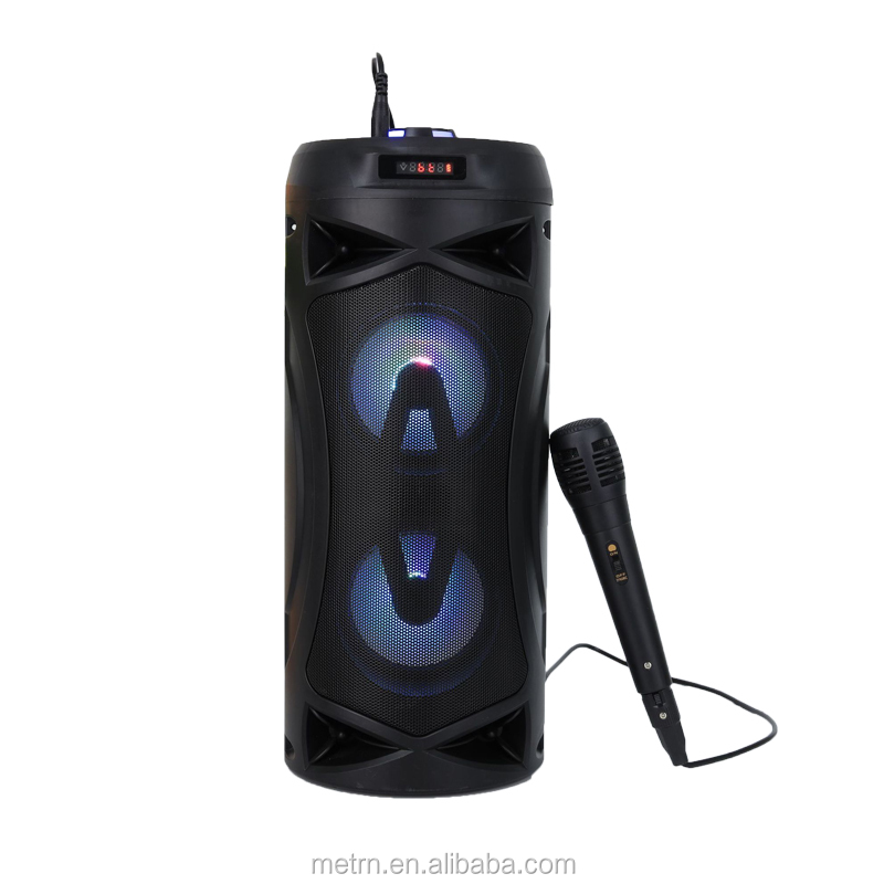 1) 1 external microphone slot for karaoke function 2) Bluetooth karaoke speaker with microphone 3) Support USB/ TF Card/ FM Radio/ Audio/ Bluetooth 4) USB charging power supply 5) Bluetooth range: 10m-15m 6) Bluetooth support: 4.2+EDR