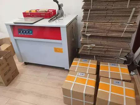 d) Put in the automatic packing machine and fasten the tie