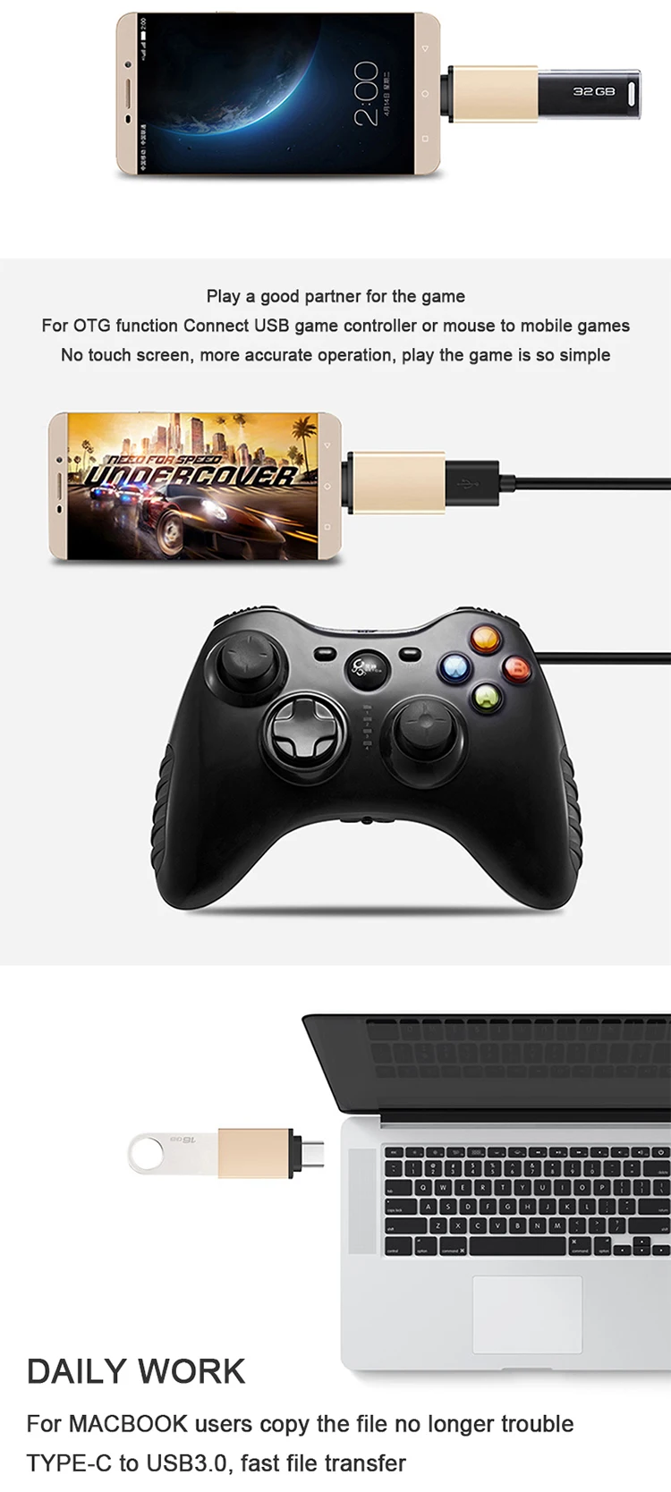 | Feature: | USB 3.1 Type C; | Compatibility 3: | for Huawei P9 Note8 V9 , for OnePlus 5/3/2 , ZUK Z1 Z2 Z2 Pro; |