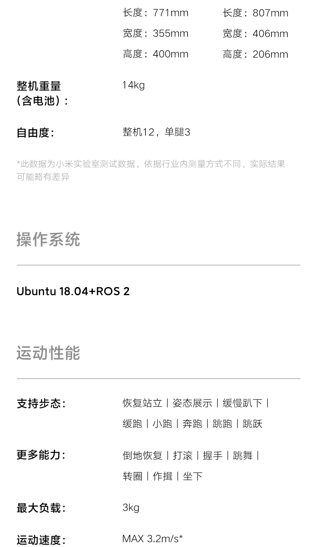 Additional abilities: fall recovery, roll over, shake hands, dance, spin in circles, sit down