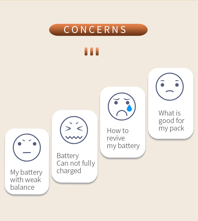 We know your concerns: why the battery bms might be badly balanced / why my battery won't be fully charged / how to rejuvenate my old battery / how to fix my battery / what's good for my battery pack.
