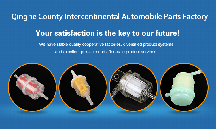 Qinghe County Intercontinental Auto Parts Factory is a professional manufacturer of fuel filters, filter elements, wire cables and rubber parts for automobiles and motorcycles. The company has fuel filters, filters, filter elements, wire cables (throttle line, brake line, clutch line, shift line) and rubber products. The annual output of various filter elements, pull lines, and hoses is tens of millions per piece. Many domestic car factories are used as supporting equipment, and are widely exported to North America, South America, Asia, Africa and some European countries.