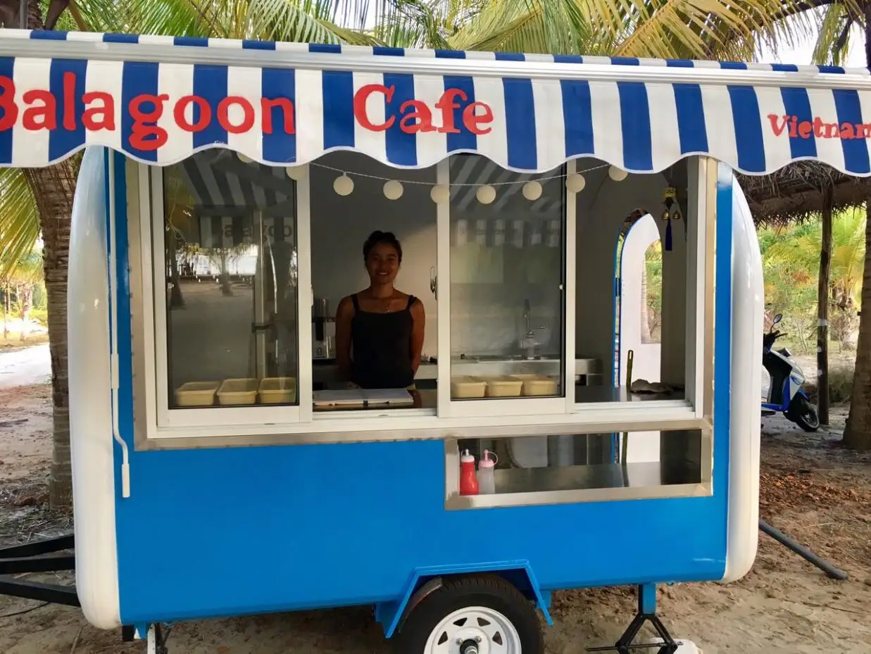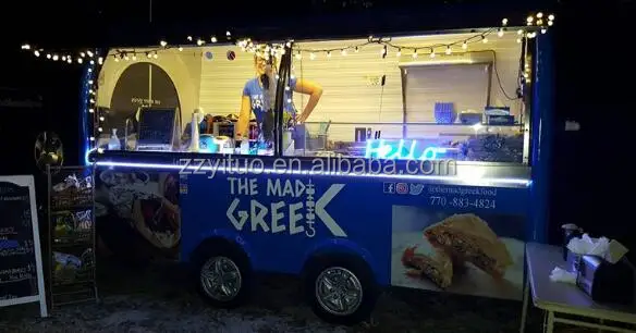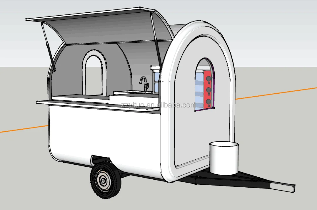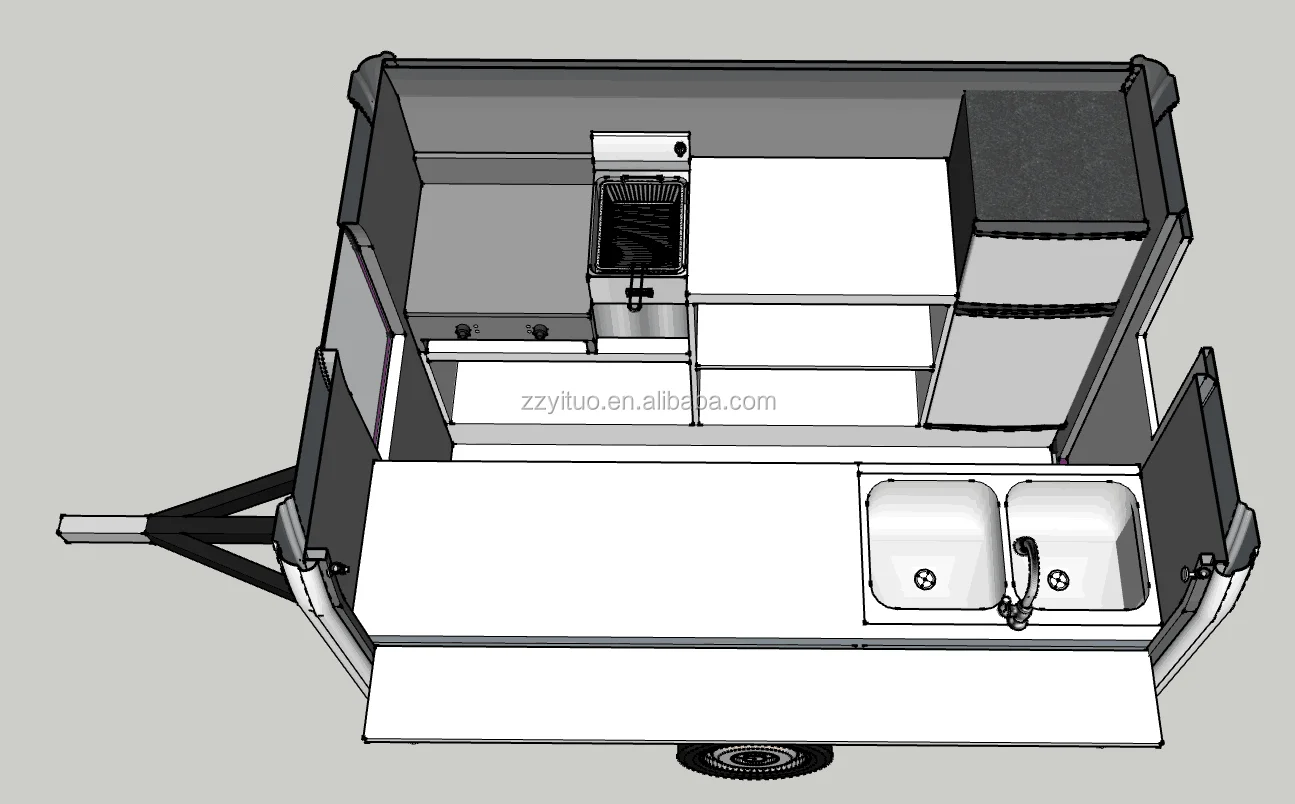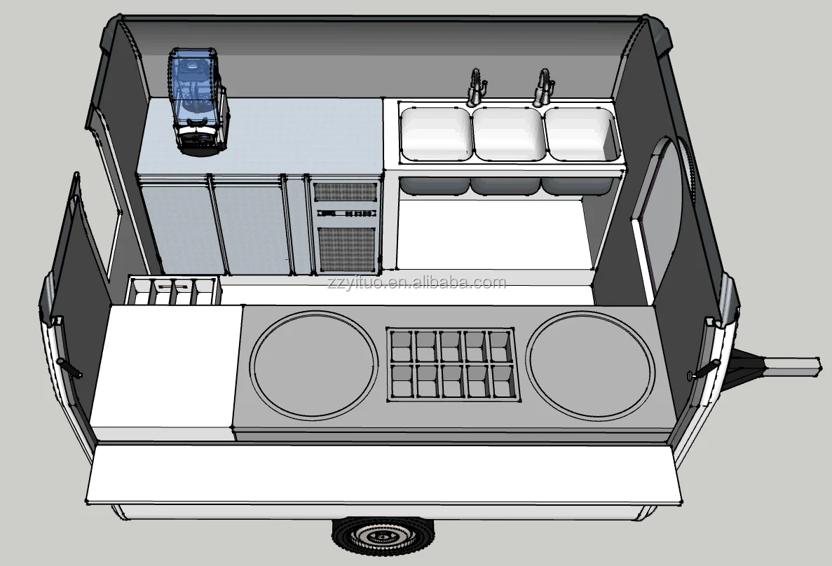 | Standard equipment | 1. Double water sinks 2. Work table 3. Stainless steel counter 4. Double -layer stainless steel shelves 5. Cash draw 6. Two sell window 7. A light 8. A water pump 9. 4-6 sockets 10. A electricity box |