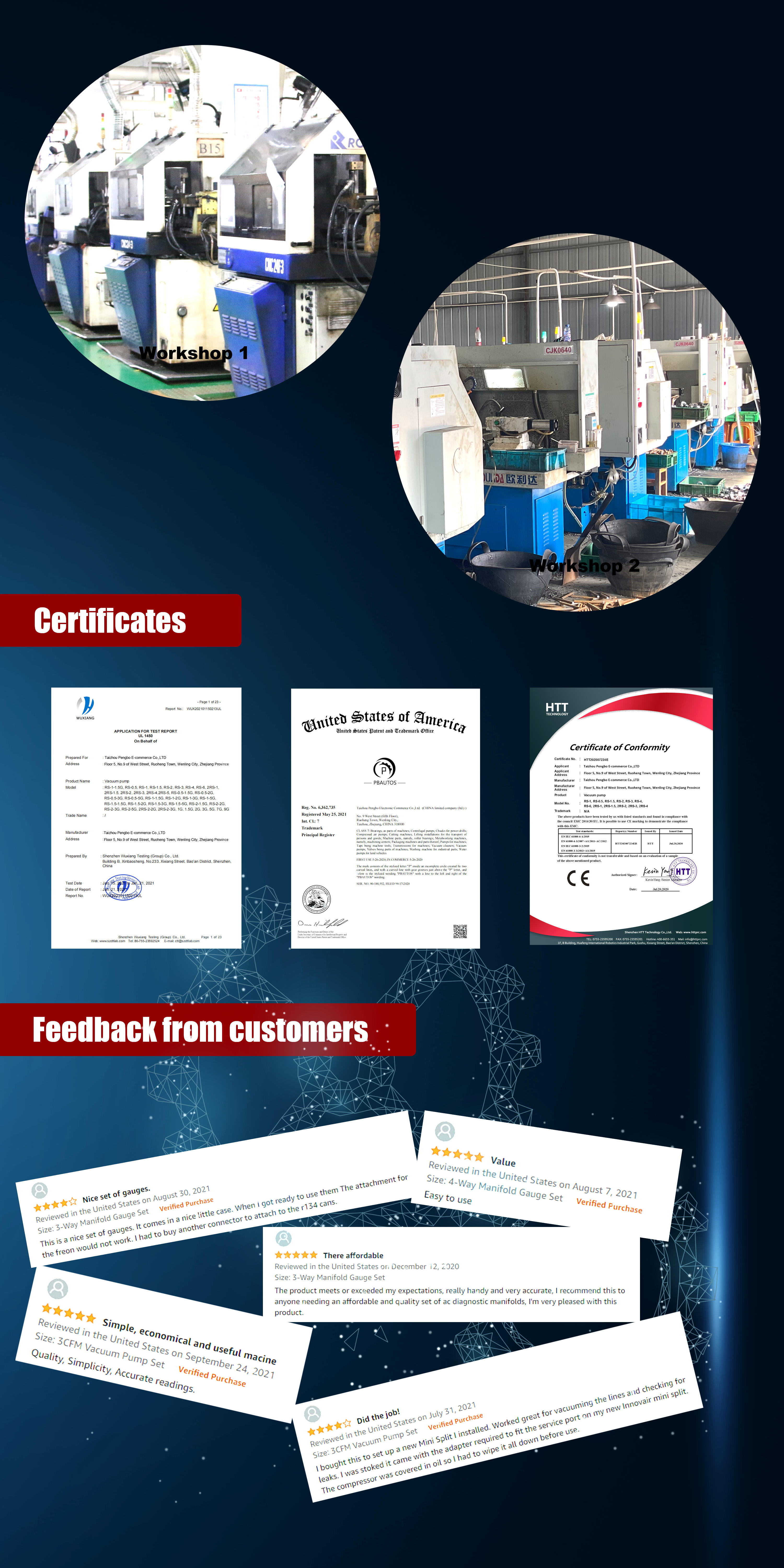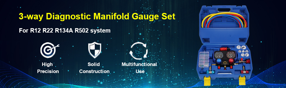 The complete tool kit is specially designed for accurate measurement of equipment pressure and maintenance of air-conditioning systems, and is widely used in the detection, repair and maintenance of automobile or household air-conditioning systems. The oversized sight glass is easy to read clearly. A good quality meter greatly improves the accuracy of the readings. All hoses are fitted with brass fittings. Different colors are designed to help identify high pressure, low pressure and fill hoses.