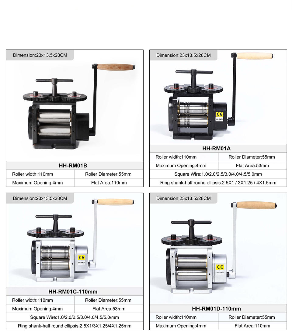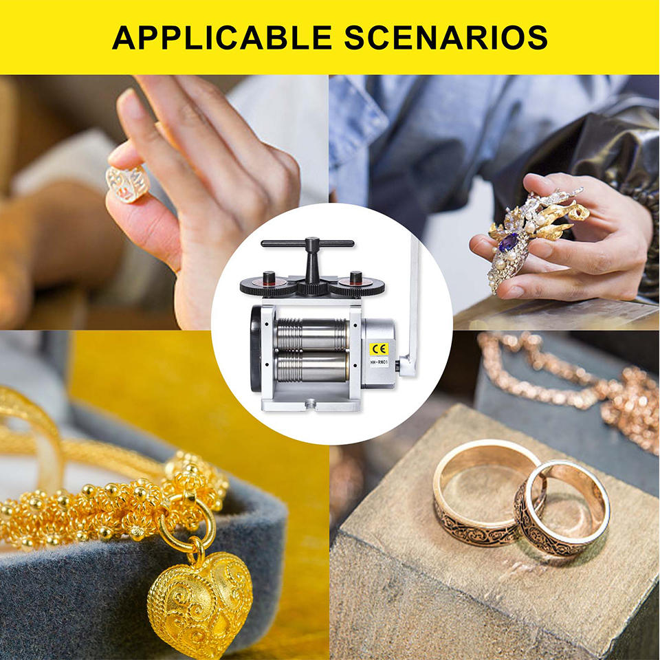 ★Application: The combination mill is ideal for jewelers and craftsmen. Rolling mills are designed for cold rolling metals, producing thinner gauge sheet and wire, transferring texture to the metal and uniformizing the thickness.