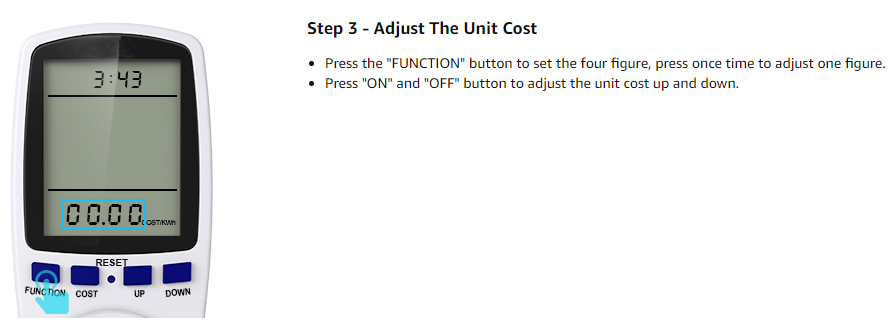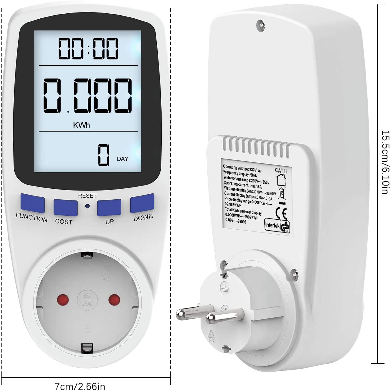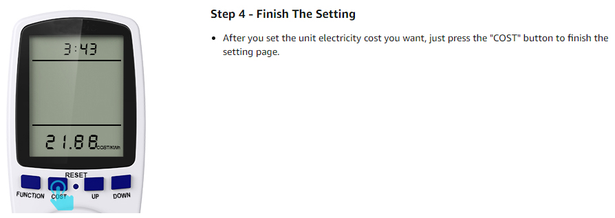 - Real-time monitoring——to monitor electrical appliances, press the SET, ENERGY, COST, CLOCK, OK, UP keys according to the electricity price setting instructions. According to the daily electricity consumption records, real-time monitoring of electricity consumption and electricity bills to ensure sufficient electricity consumption. The outlook saves energy and money.
