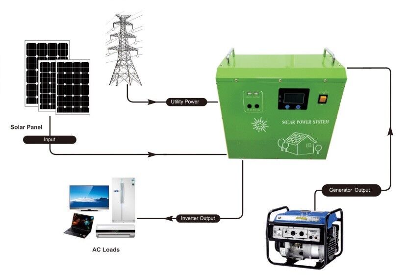 This is a pure sine wave inverter with PWM or high efficiency MPPT solar controller, LCD display provides user configurable and clear data. It can be used in solar power generation systems, electric lights, radios, DVDs, TVs, fans, freezers, computers, small electric drills, communication equipment and other household appliances.