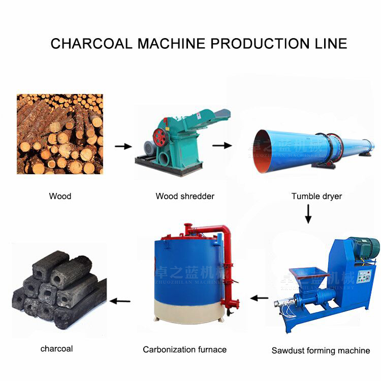 3. Biomass sawdust forming machineThirdly, produce wood chip briquettes in different shapes and sizes with our wood chip briquetting machine.4. Carbonization furnace
