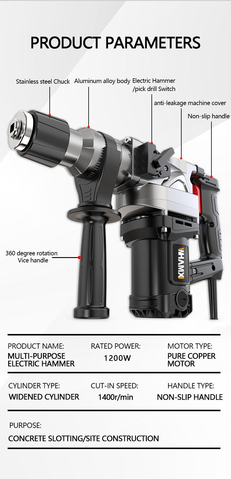 The characteristics of electric hammer | Copper motor alloy chuck with multiple functions in one machine |