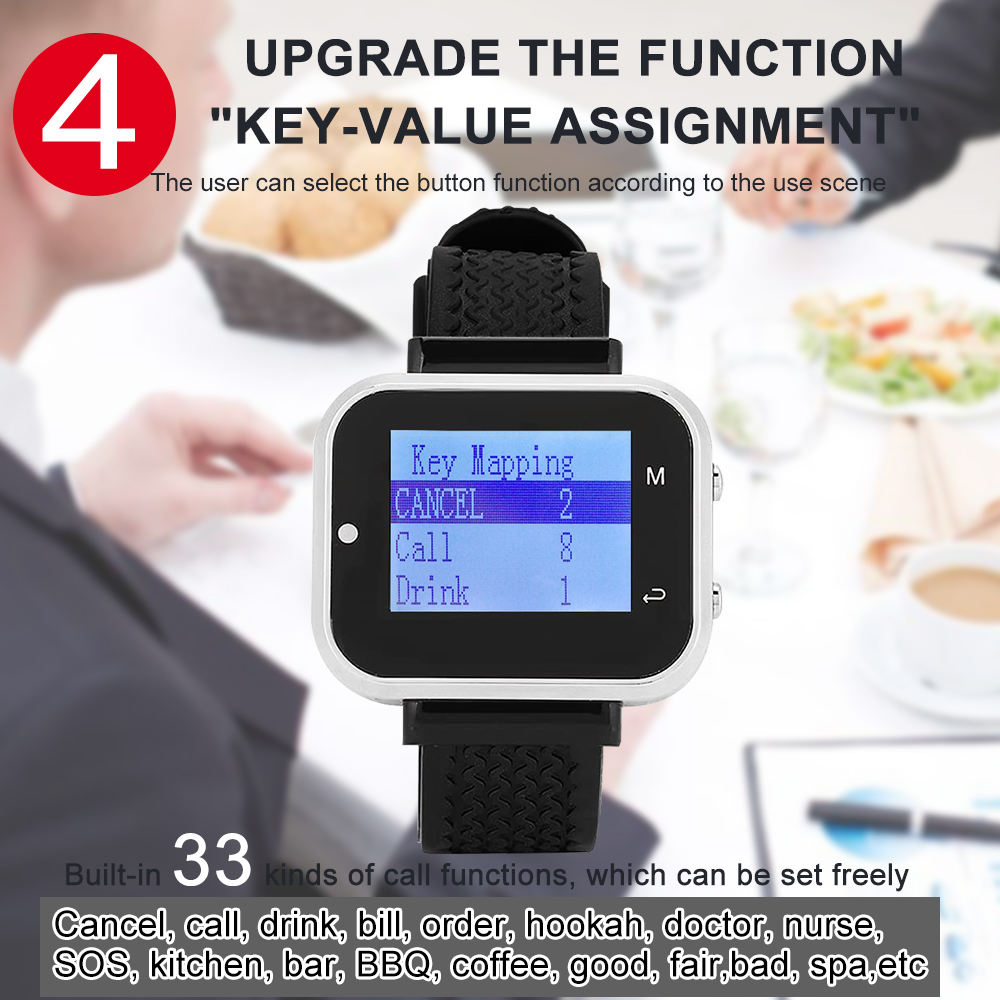 4. Upgrade function, key value assignment. Users can select button functions according to usage scenarios. Built-in 33 call functions, which can be set freely. Cancellation, phone calls, bills, orders, drinks, shisha, SOS, water, doctor, nurse, SOS, kitchen, bar, etc.