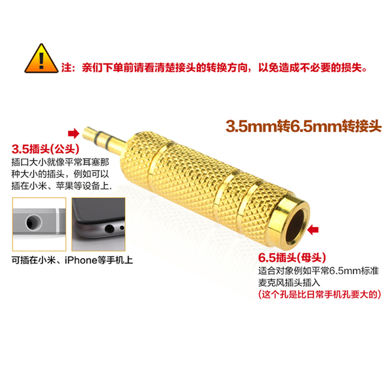 Type: 3.5mm male to 6.5mm female