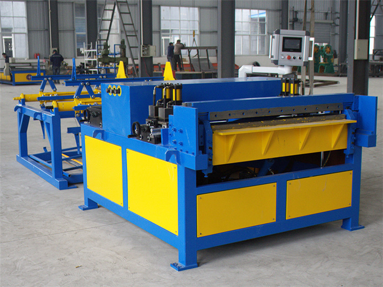 Features: Linear processing, high production efficiency, at least one operator is required. The daily processing capacity is 2,000 square meters. You only need to input the size of the air duct, and the production line automatically completes uncoiling, leveling, reinforcement, impact angle, shearing, joint occlusal, ordinary plate flange/angle iron flange forming, and folding.