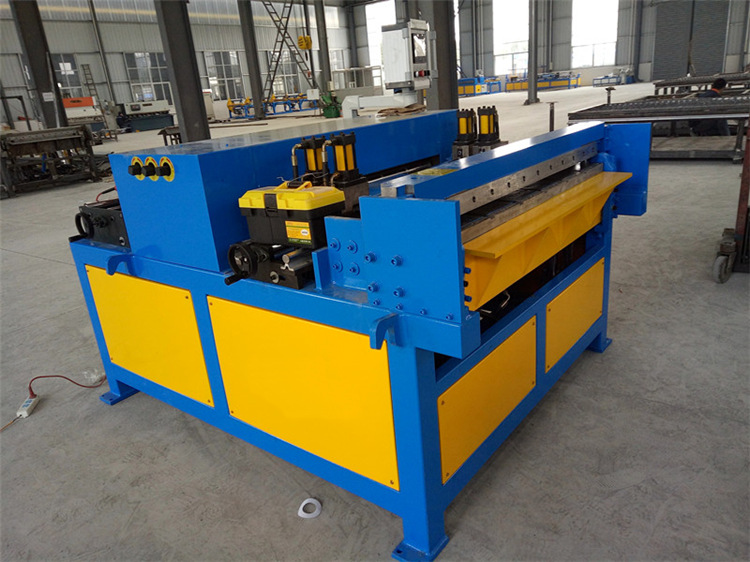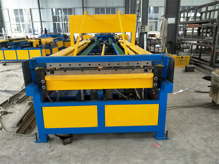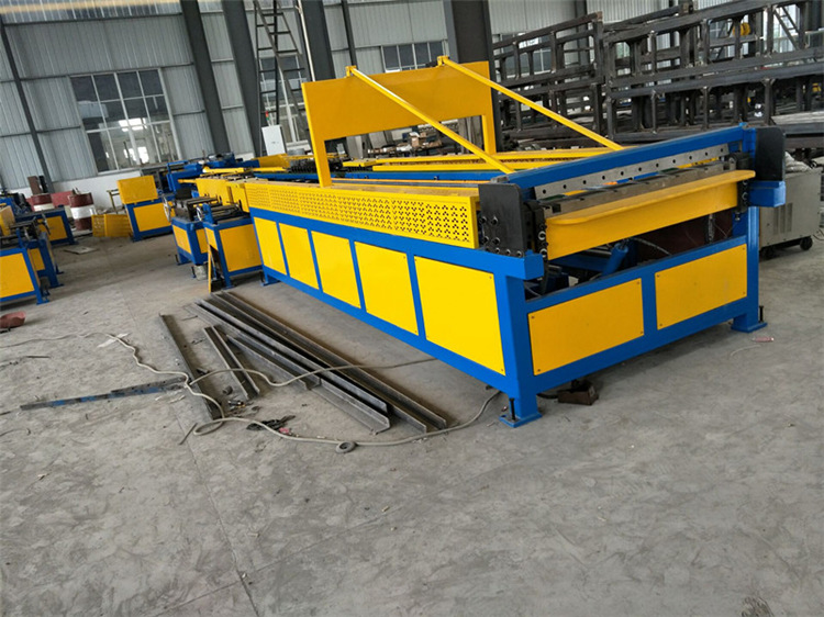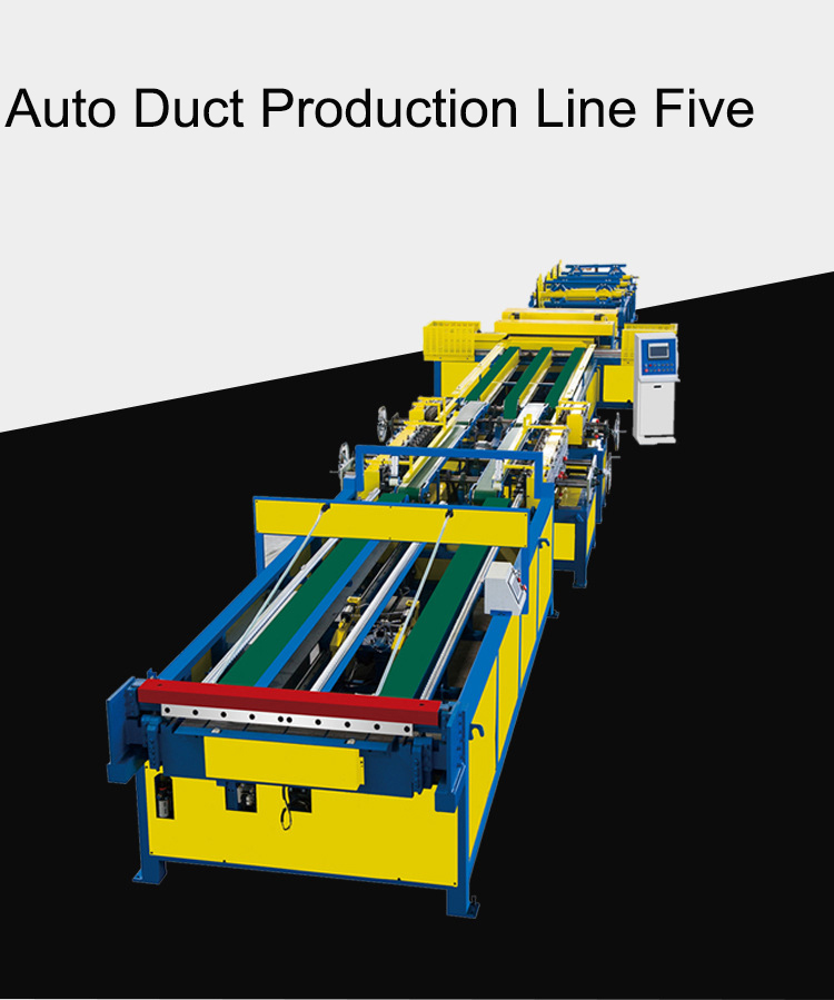 The super five-line air duct production consists of a feeding rack, leveling ribs, hydraulic punching point punching, hydraulic shearing machine, fast biting machine, manipulator grasping and positioning feeding platform, double-machine joint common plate flanging machine, double linkage biting Forming machine, servo feeding platform, TDF hydraulic folding machine. The electrical control part adopts full computer control, bending servo feeding, and accurate positioning.