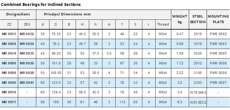 Combination bearings for inclined sections:MR0031 MR0004 MR0034 MR0006 MR0008 MR0040 MR0016 MR0011 MR0032 MR0024 MR0035 MR0026 MR0028 MR0041