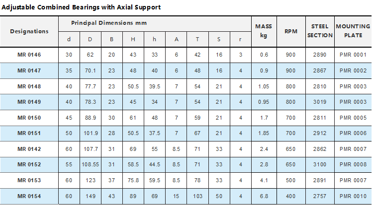 Adjustable combined bearing with axial support: MR0146 MR0147 MR0148 MR0149 MR0150 MR0151 MR0142 MR0152 MR0153 MR0154