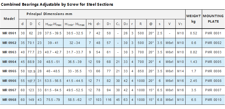 Combined bearings adjustable via screws for steel profiles:MR0961 MR0962 MR0963 MR0964 MR0965 MR0966 MR0967 MR0968