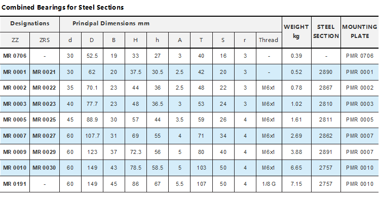 Steel combination bearing: MR0706 MR0001 MR0002 MR0003 MR0005 MR0007 MR0009 MR0010 MR0191 MR0021 MR0022 MR0023 MR0025 MR0027 MR0029 MR0030