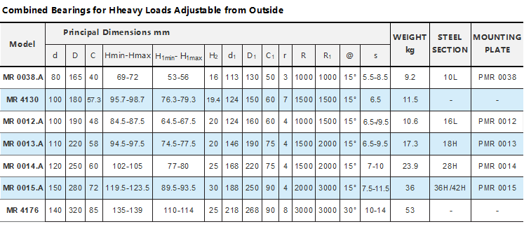 Externally adjustable heavy duty combination bearings:MR0038.A MR4130 MR0012.A MR0013.A MR0014.A MR0015.A MR4176