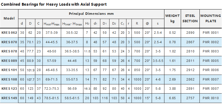 Heavy Duty Combined Bearings with Axial Support:KRES062 KRES070 KRES078 KRES089 KRES101 KRES108 KRES123 KRES149