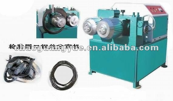 The main working parts of this machine are two relatively rotating rollers at the same speed. When the bead cuts into the middle of the two rollers, it is squeezed by the roller shaft, and at the same time squeezed, sheared and torn by the two relatively rotating rollers. And finally complete the multiple separation of the steel wheel.