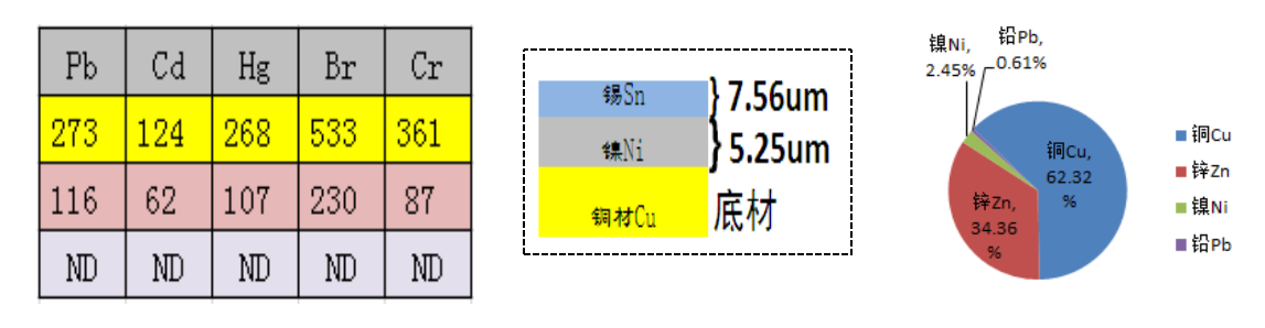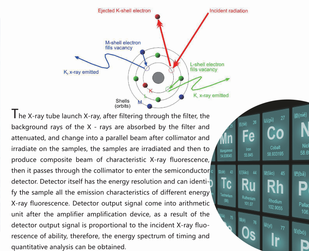 | Testable elements: | elements from sulfur to uranium RoHS restricts harmful elements Pb/Hg/Cd/Cr/Br HF limit halogen harmful element Br/Cl The eight heavy metals in En71-3 are lead (Pb)/arsenic (As)/antimony (Sb)/barium (Ba)/cadmium (Cb)/chromium (Cr)/mercury (Hg)/selenium (Se) |