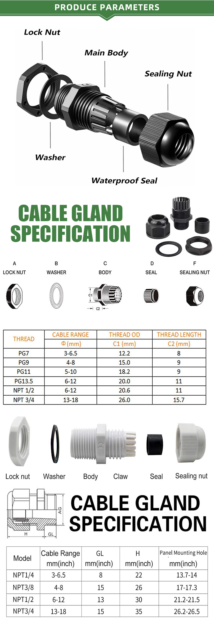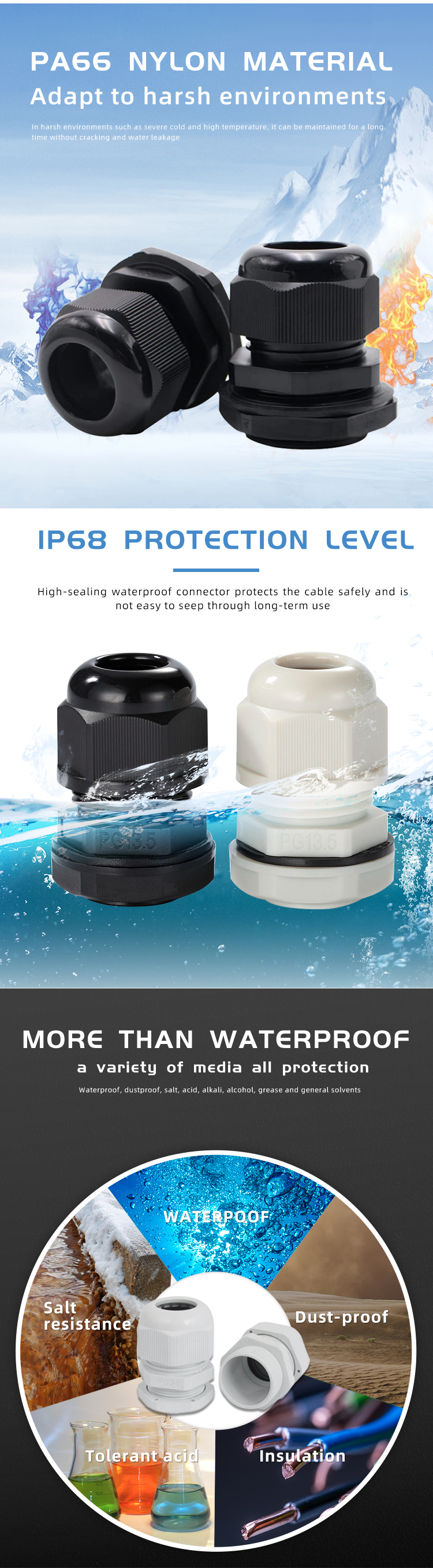 | color: | black and white | Key words: | Nylon Cable Glands |