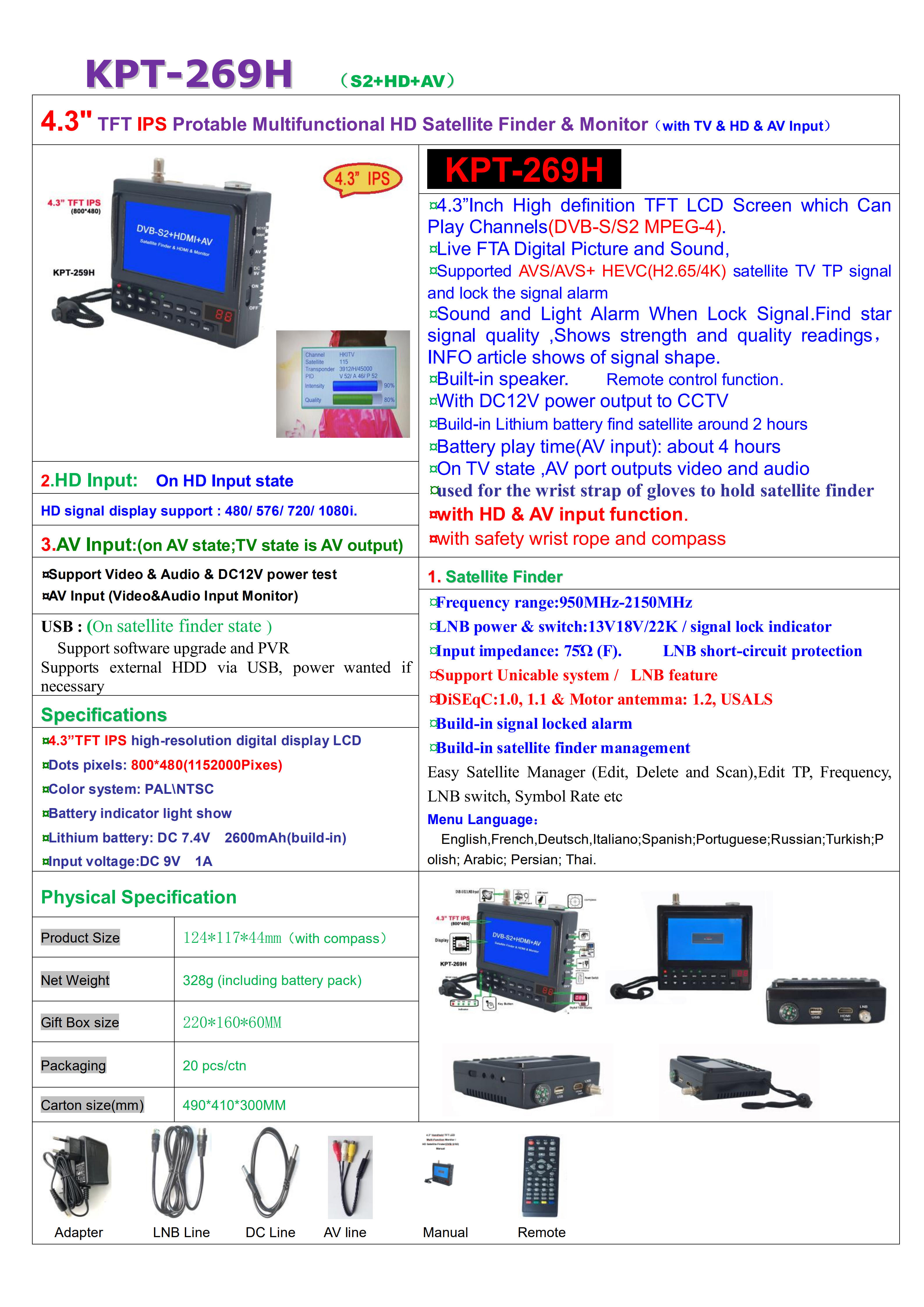 | frequency: | 950MHz-2150MHz | Support 1: | DVB-S (MPEG-2) satellite signal video decoding |