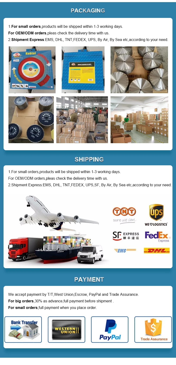 | Product Name: | Diamond Saw Blade; | Payment Terms: | L/C,D/A,D/P,T/T,Western Union,MoneyGram,Paypal, Cash; |