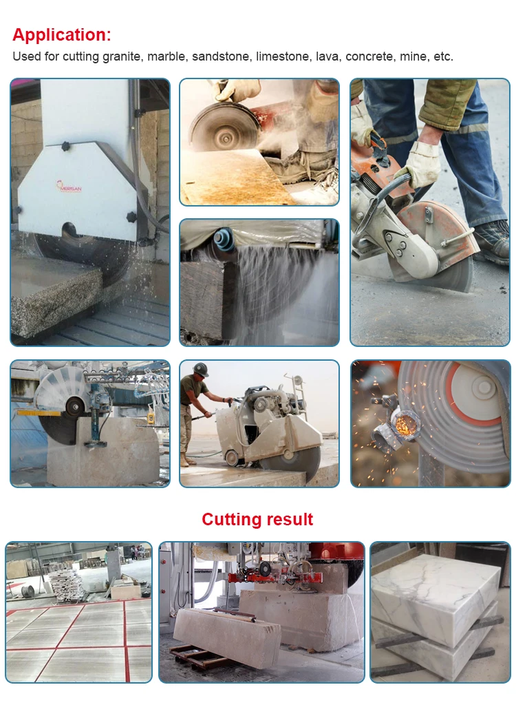 | Application | Diamond segment Used for cutting granite (marble, sandstone, limestone, lava, concrete, mine ) |