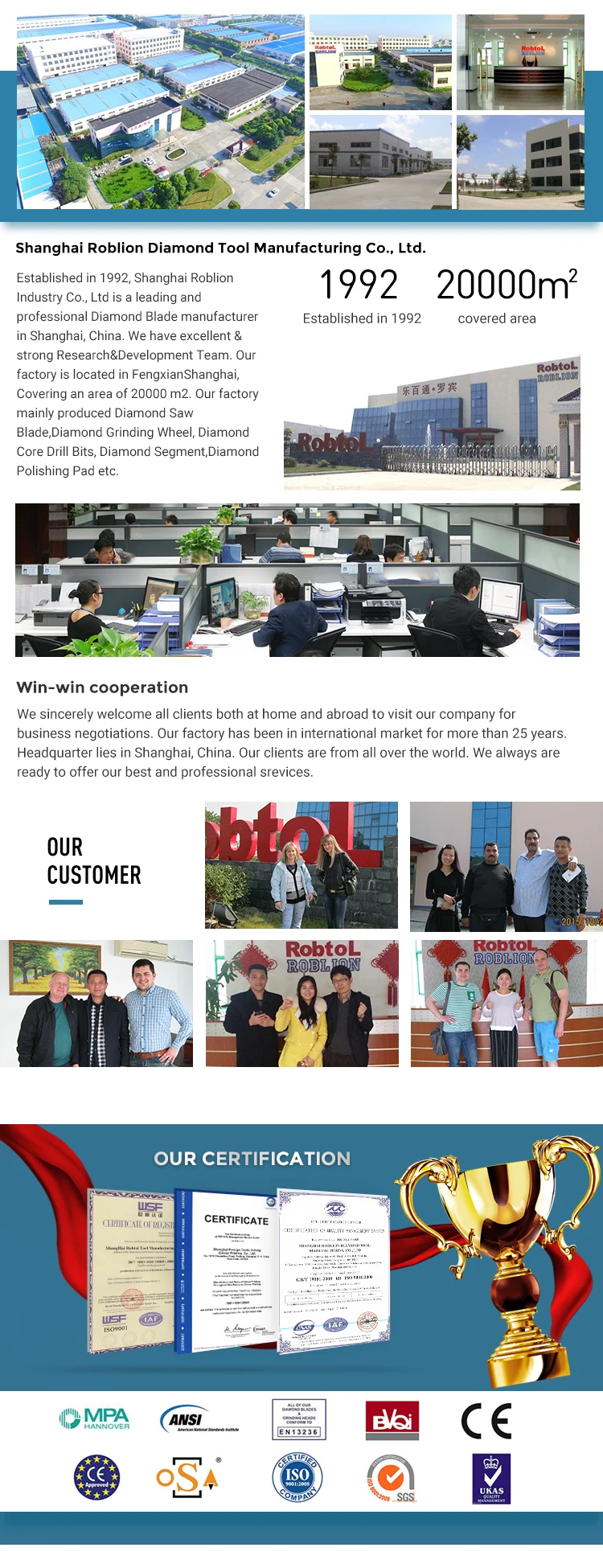 1. Fast cutting & long life & Stable performance, High grade of diamonds