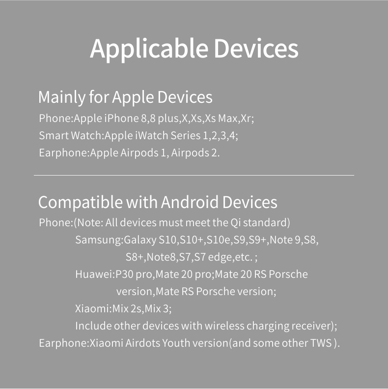 | Compatible: | Qi-enabled phones | Output current: | 5/7.5/10W |
