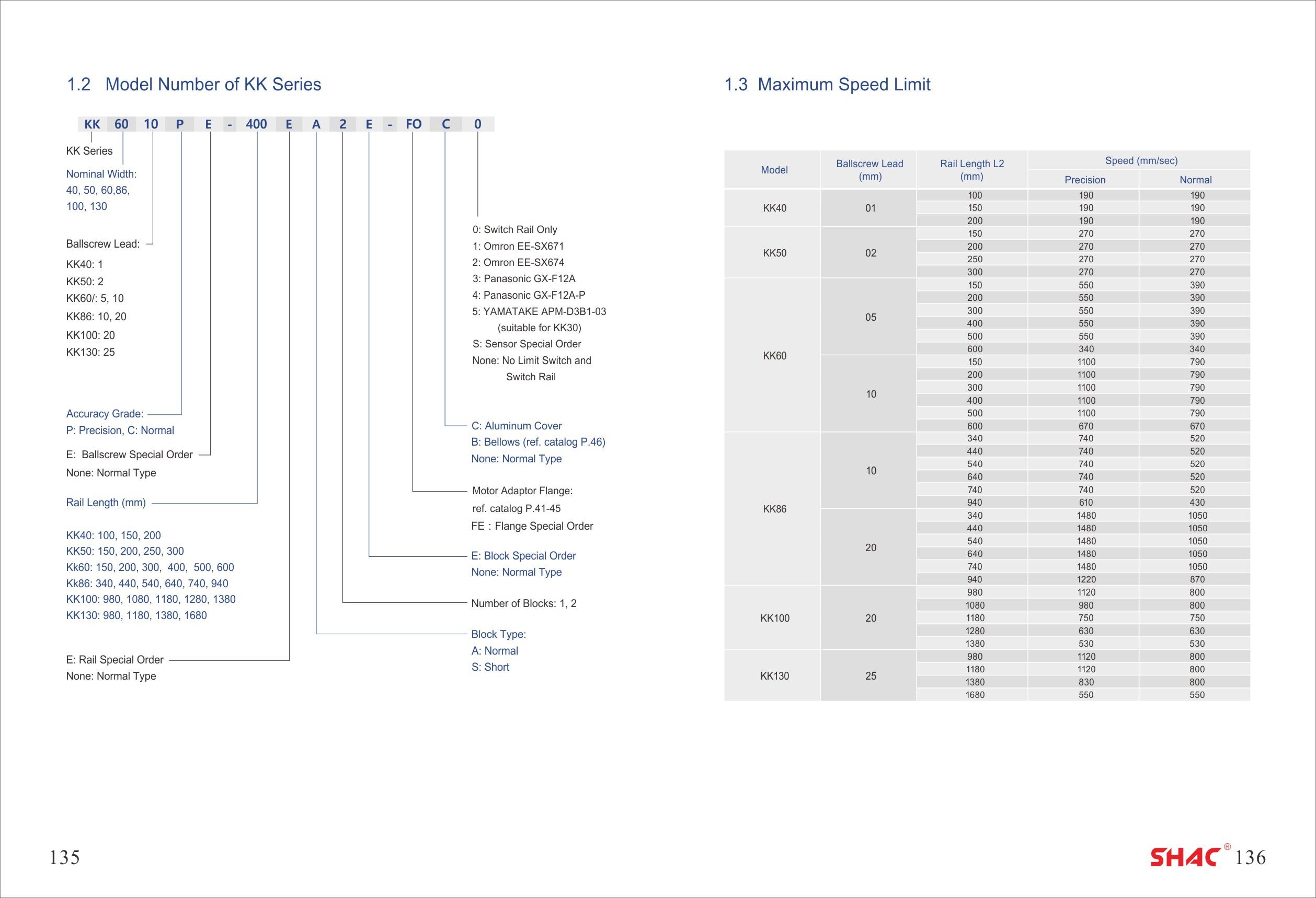 KK130K: 980mm, 1180mm, 1380mm, 1680mm