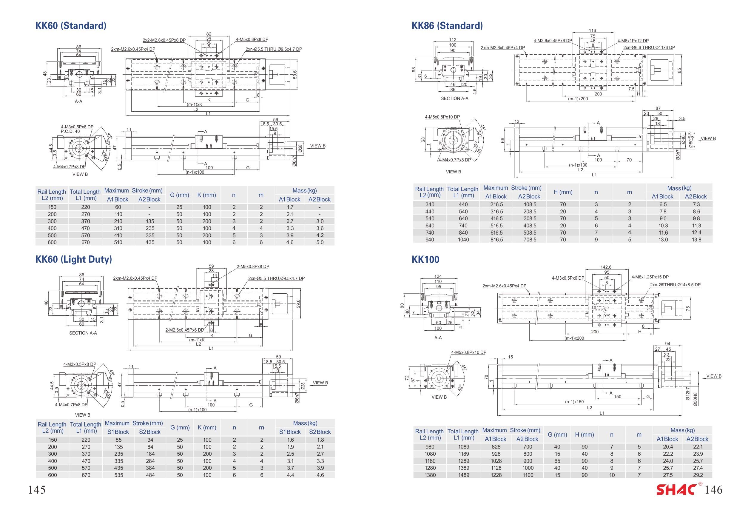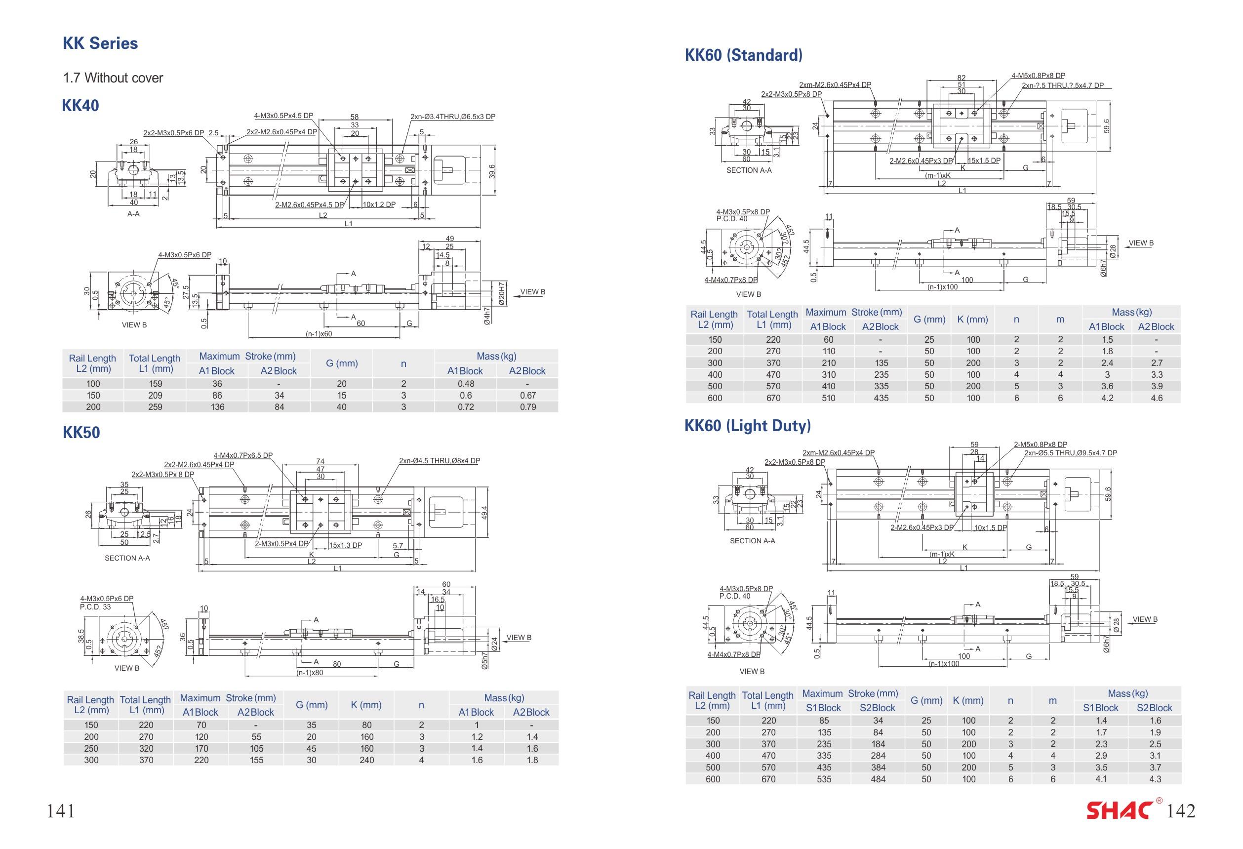 KK60: 150mm, 200mm, 300mm, 400mm, 500mm, 600mm