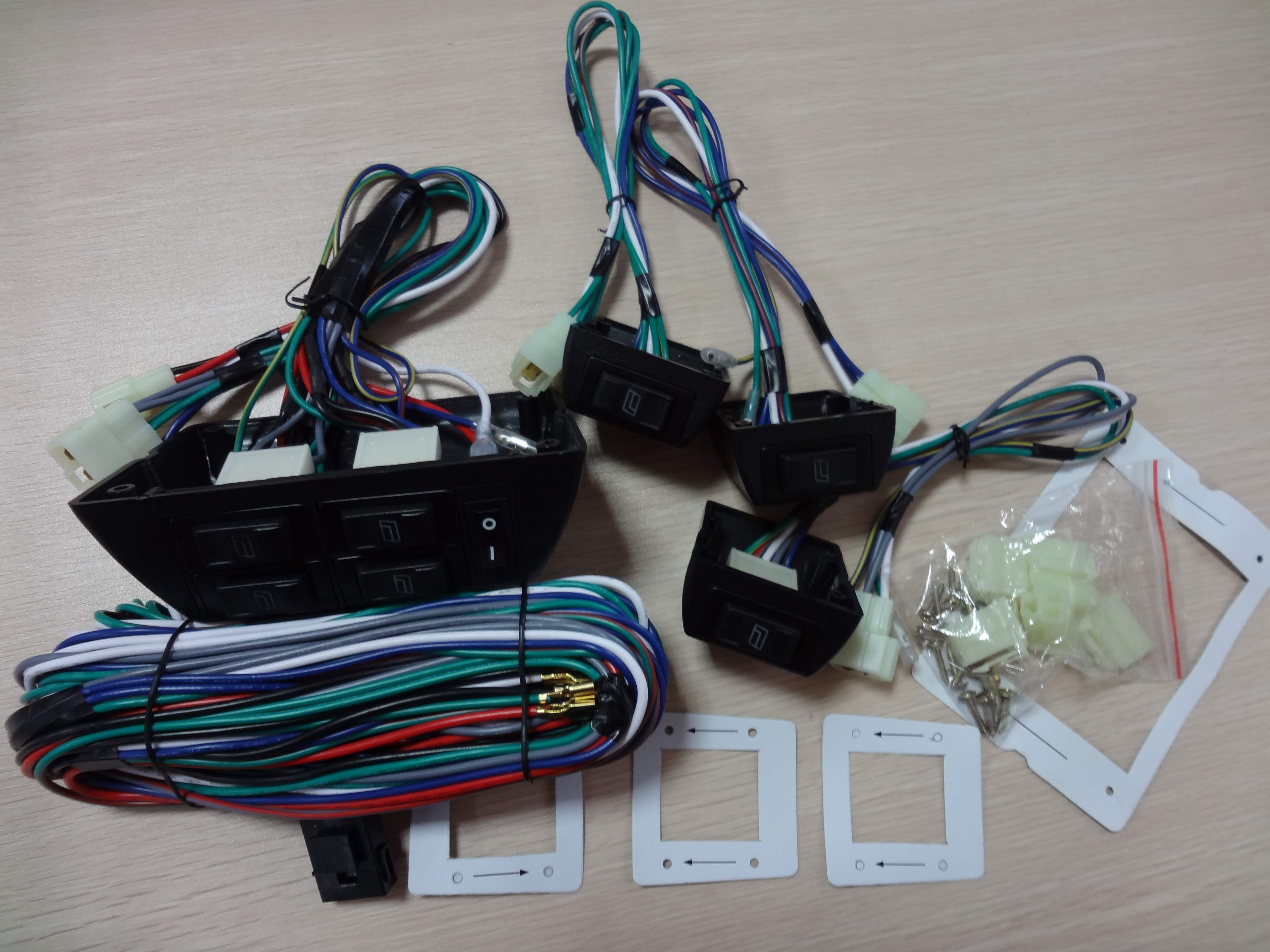 Push Button Switch with Wire Set for Universal 12V Car Power Window Power Window Kit Window Lift Regulator 4 Doors