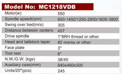 | units/20''(pcs): | 245; | tool rest: | 6''; |