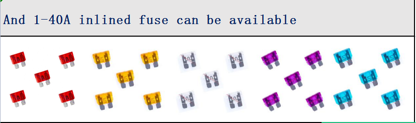 | metallic line: | UL1015/1007 22AWG ~ 12AWG | Fuse size: | ATO fuse |